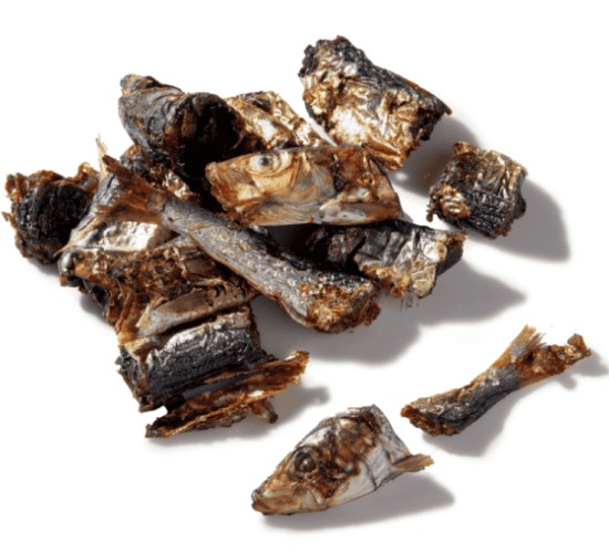 These are whole sardines cut into small chunks making them