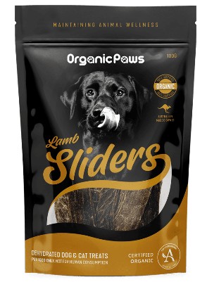 Lamb Sliders are a high quality dehydrated treat for your dog or cat made with Certified Organic premium lean prime strips of beef meat with