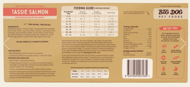 As with all Big Dog products, this recipe wouldn’t be complete without a balanced blend of nutrient-dense seasonal fruits and vegetables, as well as Big Dog’s special extra ingredients, including goats whey, cold-pressed ground flaxseed, whole eggs, kelp, and sprouted wheatgrass for added nutrition and goodness for optimal health and wellbeing.